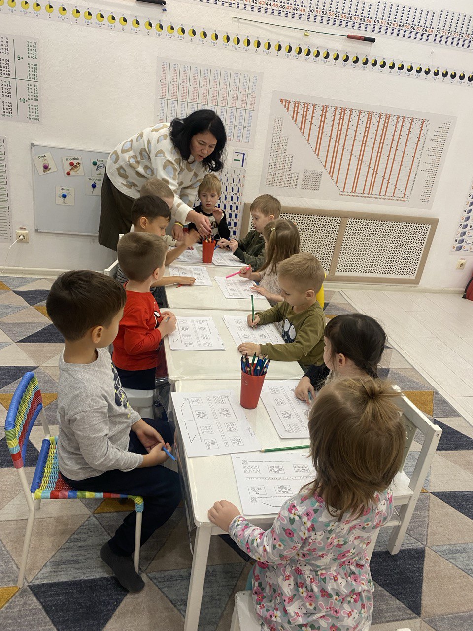 На наших занятиях мы уделяем большое внимание развитию математических и умственных способностей ребят.